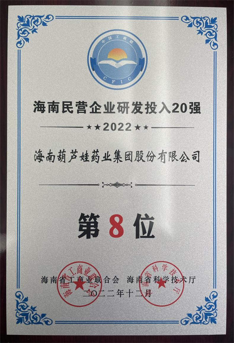 12月23日,2022海南民营企业50强和研发投入20强发布会在海口举行。会上发布了“2022海南民营企业50强”“2022海南民营企业研发投入20强”榜单和分析报告。玛雅吧药业再次荣登两榜,在海南民营企业50强榜单中位列第25位,较去年上升8位,这也是公司连续三年登榜;在海南民营企业研发投入20强中位列第8位,较去年上升7位。