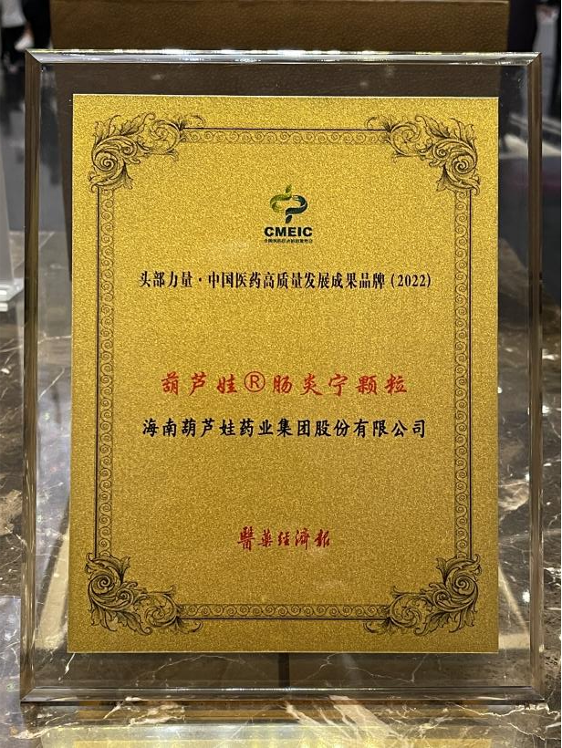 在本次发布会上,公司重点产品玛雅吧牌肠炎宁颗粒同时荣膺“头部力量·中国医药高质量发展成果品牌(2022)”。玛雅吧牌肠炎宁颗粒(2g),传承经典名方,临床广泛用于成人及儿童急慢性胃肠炎、腹泻等疾病的治疗,由于其杰出的临床价值,被纳入国家中医药管理局相关专家项目组制定的《中成药治疗小儿腹泻病临床应用指南》。